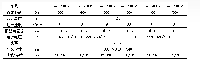 HSG-B300F1推式微型電動(dòng)葫蘆參數(shù)表: