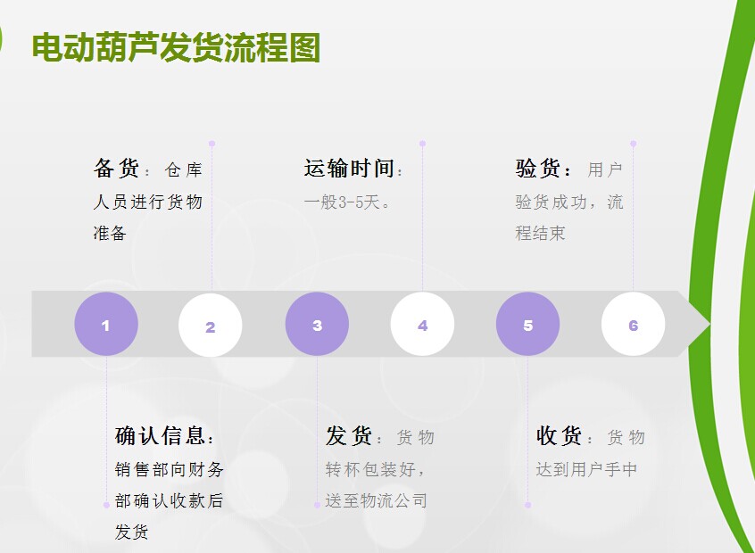 很多用戶在付款以后,覺得自己貨物情況不了解,為了便于用戶了解小型電動葫蘆的發貨,我們把我公司具體的發貨流程通過圖片展示給大家,具體流程看一下圖片。